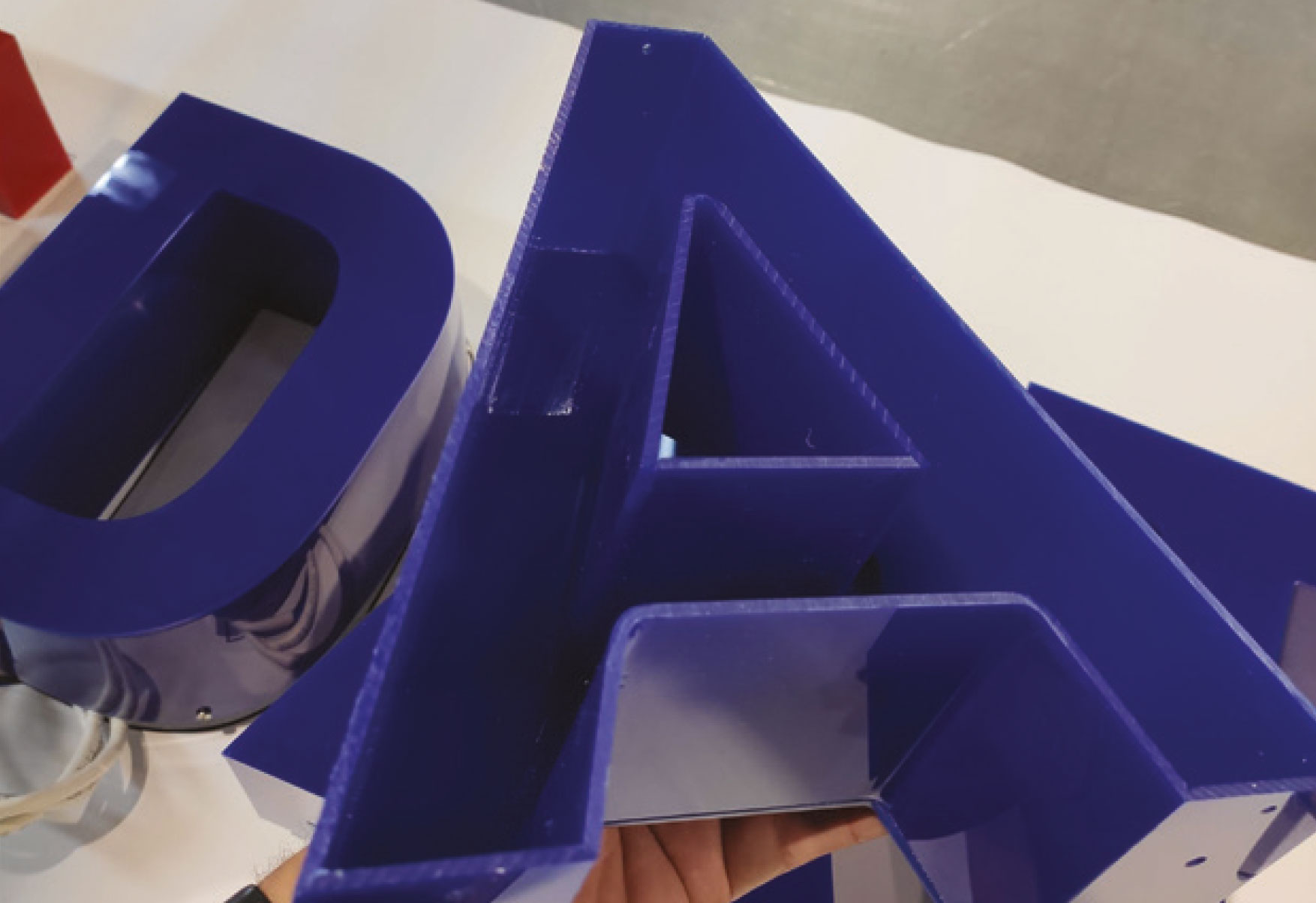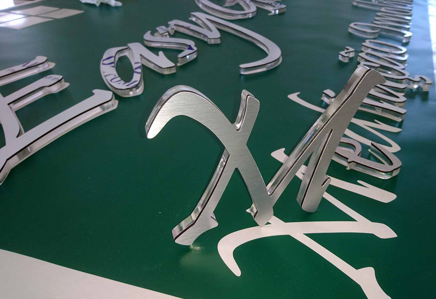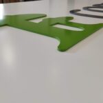Decorativo, para Branding ou meramente Indicativo. Simplesmente recortado, as soluções são variadas. O corte CNC de letras dão uma nova vida ao ambiente e é uma opção mais duradoura que a impressão. O relevo das letras dá uma impressão 3D, pois impacta a visualização em vários ângulos e podem ser em duas cores de PVC: branco e preto.