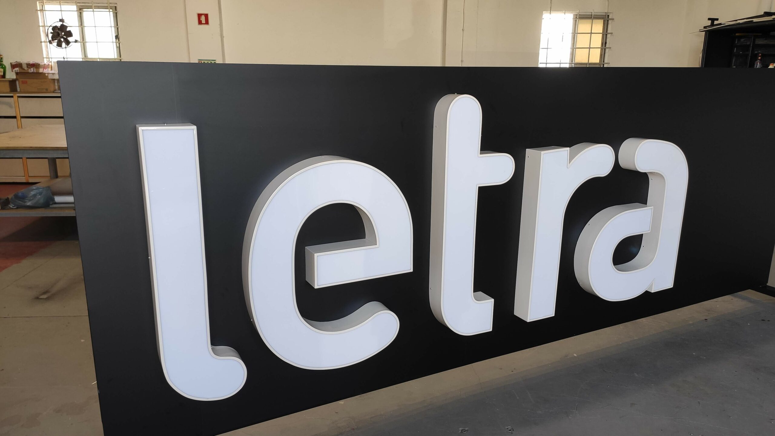 O Perfil 3 é contruído por alumínio com acabamento em termolacado. A traseira é feita de acrílico opalino 3mm para difusão uniforme de Luz. As letras podem ser produzidas sem iluminação se desejado. A instalação é seguida com distanciadores em latão cromado. Para letras não iluminadas, pode-se solicitar o fundo de PVC.